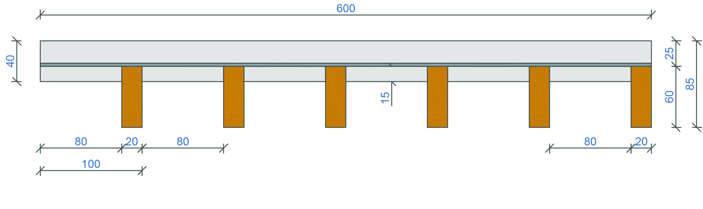 Base material: Real wood: Pine, Larch, Birch, Oak etc. Lath size (wx/hx): 20x60mm Sloted cross bar: 45x35mm+26x35mm No. of blades: 6 Element weight kg/m2: 5,83 Surface: Standard WB coating , oil /wax coating, staining etc. Fire classification: B s1.d0 , EU norm EN 13501- Humidity resistance: 70% standard to 95% treated Acoustical treatment: Rockfon Industrial mineral fibre pad 20mm or acoustical fleece 155g/m2 Open area: 80% Suspension: Standard plaster board studs or wood trims - direct mount